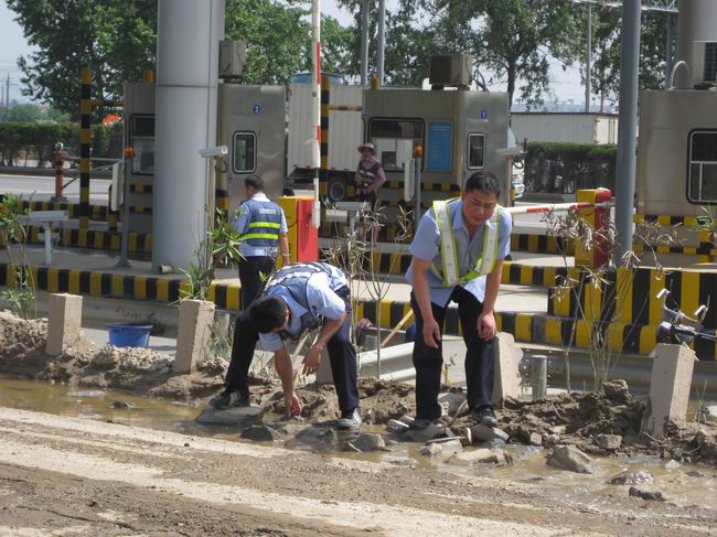 前不久,武漢市持續(xù)的陰雨天氣使白沙洲服務(wù)站武昌至漢陽(yáng)方向收費(fèi)車(chē)道外的一條小路布滿了大大小小、深淺不一的水坑,給過(guò)往車(chē)輛的安全通行帶來(lái)極大隱患。