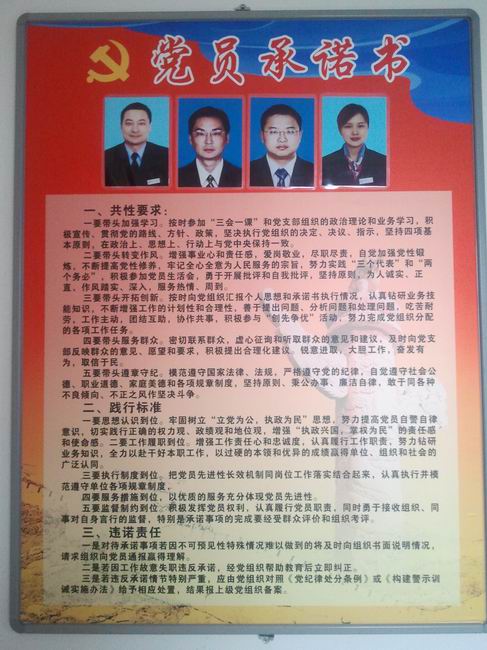 全體黨員結(jié)合各自崗位實(shí)際,踴躍表態(tài),簽訂了《黨員承諾書》,主動(dòng)接受群眾監(jiān)督。承諾書緊緊圍繞“推動(dòng)科學(xué)發(fā)展、促進(jìn)社會(huì)和諧、服務(wù)人民群眾、加強(qiáng)基層組織”和“五要”的要求,通過制定黨員標(biāo)準(zhǔn)、設(shè)置黨員示范崗、群眾監(jiān)督、動(dòng)態(tài)管理四種形式,不斷提升黨員政治素質(zhì),帶頭服務(wù)群眾,切實(shí)提高黨員服務(wù)科學(xué)發(fā)展的自覺性和責(zé)任感,推動(dòng)活動(dòng)向縱深開展。