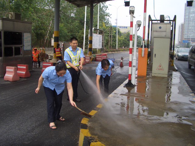 8月24日上午,廟山服務(wù)站組織行管后勤人員以及現(xiàn)場(chǎng)當(dāng)班職工對(duì)收費(fèi)現(xiàn)場(chǎng)進(jìn)行全面清掃和沖洗。大家干勁十足,有的清掃,有的手持高壓水槍沖洗、有的拿著刷子、抹布,對(duì)收費(fèi)現(xiàn)場(chǎng)的路面、安全島、收費(fèi)亭以及防撞柱等設(shè)施進(jìn)行了徹底清洗。 經(jīng)過(guò)一上午的徹底清掃和沖洗,從地面到收費(fèi)亭煥然一新。