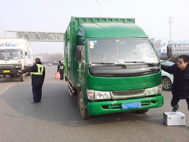 元月15日上午10:40分,長豐橋服務站漢陽橋頭一輛綠色廂式貨車突然停住。