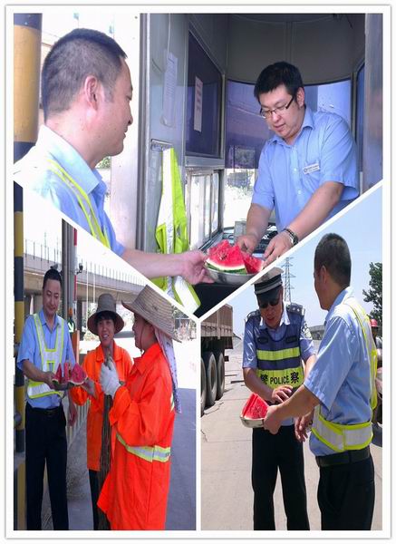 近日,突襲的炎熱天氣高達(dá)35℃,為保證職工身心健康,收費(fèi)工作正常開展,黃家大灣服務(wù)站采取一系列措施,積極創(chuàng)造條件,加強(qiáng)勞動(dòng)保護(hù),確保各項(xiàng)工作有序進(jìn)行。