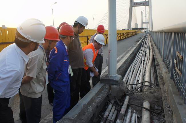 檢查組深入現(xiàn)場,對二七長江大橋江北主配電房的變壓器、高壓配電柜等設施設備、規(guī)章制度、操作流程等進行了全面檢查,并對二七長江大橋綜合辦公樓進行了專項安全檢查;在長江二橋維修項目工地,雷董事長一行檢查了水馬圍擋設置、人行道板拆卸、拉索減震器及索夾拆卸、主橋塔下施工支撐梁等施工情況。