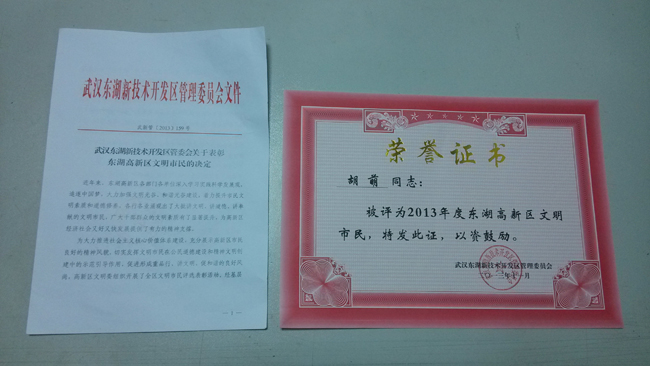 12月2日,從東湖高新區(qū)管委會傳來喜訊,在武漢市東湖高新區(qū)文明市民評選活動中,王家店服務(wù)站職工胡萌同志榮獲“文明市民”稱號,這是該站文明創(chuàng)建工作的又一成果。
