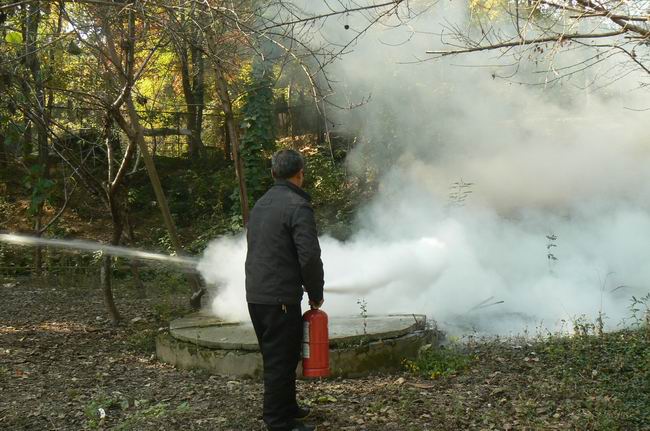檢查中,山莊組織了一次初級(jí)火災(zāi)消防演練。大火一著,山莊一人負(fù)責(zé)打開消防栓、一人肩扛消防水袋、一人手拿消防槍頭,一人手拿滅火器,對(duì)準(zhǔn)火苗,不到2分鐘,大火即被撲滅,安全演練工作完滿結(jié)束。