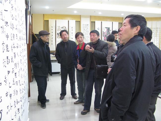 路橋中心工會(huì)分批組織各單位職工,對(duì)書畫展進(jìn)行了參觀學(xué)習(xí)。展出期間,城投公司董事、路橋中心主任鄧耀光、城投公司工會(huì)主席江強(qiáng)生、黨群工作部申志忠等領(lǐng)導(dǎo)蒞臨現(xiàn)場(chǎng),與石海先生交流了中國(guó)書法歷史,鑒賞了展出的書畫作品。