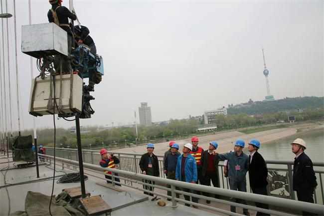 檢查人員沿線查看了晴川橋全橋防腐涂裝、吊桿纏包帶更換等項(xiàng)目施工,聽取了業(yè)主項(xiàng)目部、施工單位、監(jiān)理單位關(guān)于工程推進(jìn)情況的匯報(bào)。鄧耀光主任在充分肯定工程施工質(zhì)量和現(xiàn)場安全文明施工的同時(shí),強(qiáng)調(diào)晴川橋是我市地標(biāo)性建筑,此次施工是在不封閉交通的情況下進(jìn)行,參建單位在施工中務(wù)必采取科學(xué)的措施方案,實(shí)行精細(xì)化管理,在確保施工質(zhì)量和施工安全的同時(shí),要密切關(guān)注天氣變化,合理安排工程進(jìn)度,爭取在5月底之前竣工。