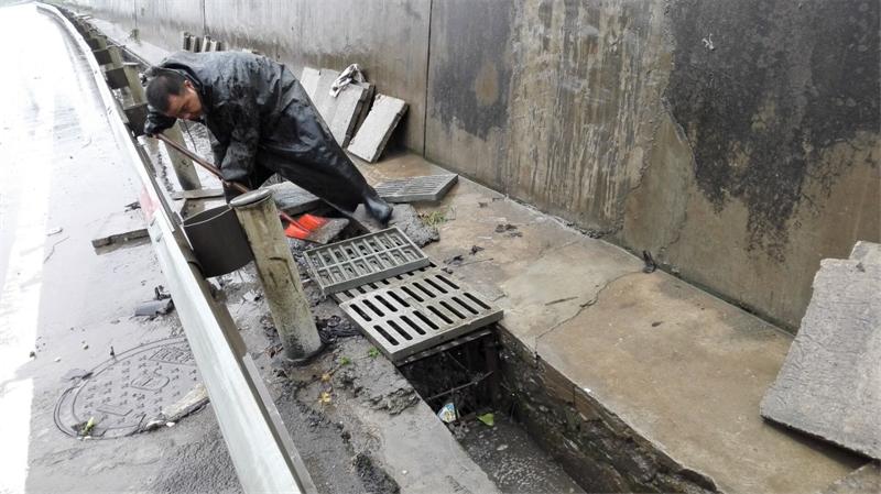 天興洲大橋管理所組織人員疏通天興洲大橋下排水溝淤泥