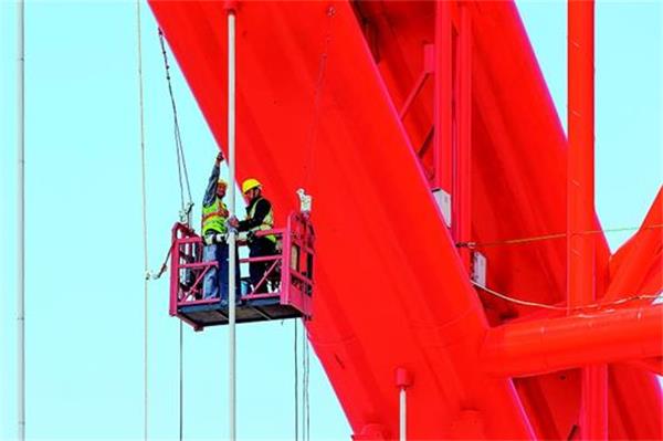 4月1日,位于武漢市漢江口的晴川橋,紅色橋拱已涂刷一新,施工人員正抓緊安裝景觀燈。 目前,武漢長(zhǎng)江主軸橋梁“三化”(彩化、亮化、美化)工程正在緊鑼密鼓施工中,預(yù)計(jì)6月完工。此次“三化”共針對(duì)8座大橋,其中長(zhǎng)江上7座,依次為白沙洲長(zhǎng)江大橋、鸚鵡洲長(zhǎng)江大橋、長(zhǎng)江大橋、長(zhǎng)江二橋、二七長(zhǎng)江大橋、天興洲長(zhǎng)江大橋,以及計(jì)劃今年9月建成的楊泗港長(zhǎng)江大橋;漢江晴川橋。 武漢以“橋都”著稱,境內(nèi)僅長(zhǎng)江大橋就有11座(其中在建2座),造型各異的橋梁成為一道亮麗風(fēng)景線。