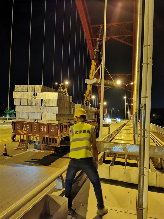 在晴川橋綠化項目施工中,為最大限度減少施工對交通的影響,建通公司項目人員連續(xù)多日“熬夜工作”,從晚上10點到凌晨3點,將400多個不銹鋼關(guān)鍵構(gòu)件吊放在橋面指定位置,整齊有序地擺放至橋面人行道兩側(cè),為下一時間節(jié)點綠化種植花草提供重要保障。