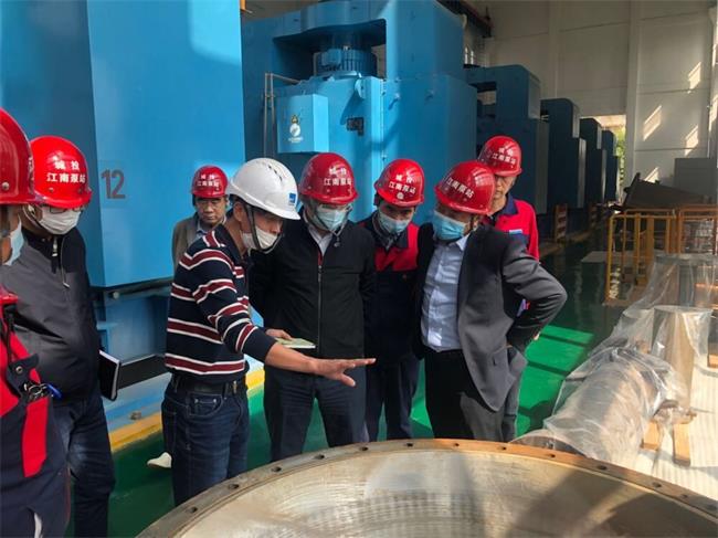 會(huì)后,城運(yùn)公司總經(jīng)理張正發(fā)、副總經(jīng)理房柱及企業(yè)管理部、項(xiàng)目管理部負(fù)責(zé)人,在江南泵站負(fù)責(zé)人的陪同下,到泵房車間實(shí)地查看了機(jī)組檢修工作現(xiàn)場(chǎng)。