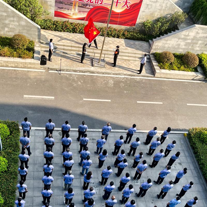 伴隨著莊嚴(yán)的國歌聲,鮮艷的五星紅旗冉冉升起?,F(xiàn)場人員莊嚴(yán)列隊(duì),齊唱國歌,向五星紅旗行注目禮,共同祝福偉大祖國繁榮昌盛。