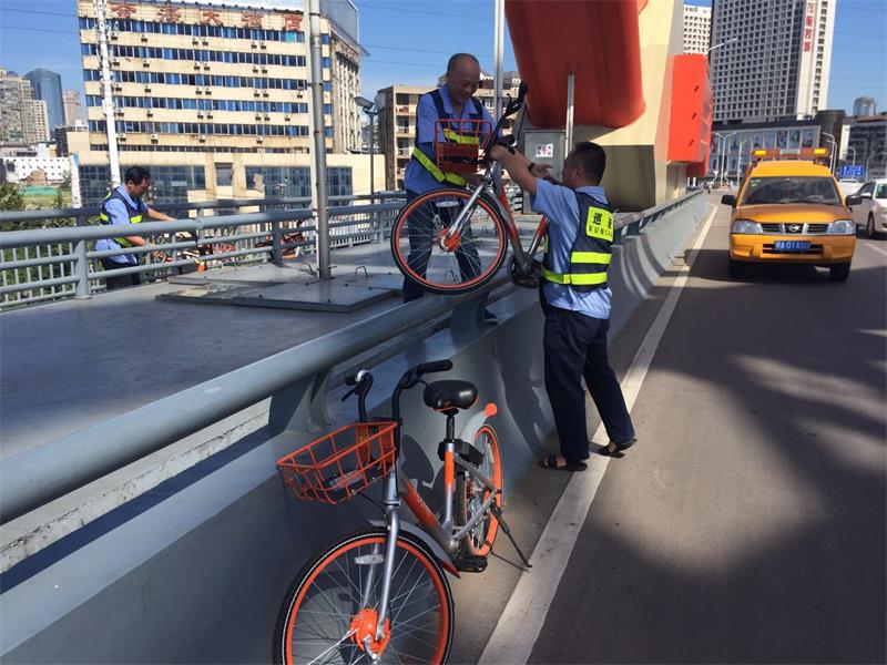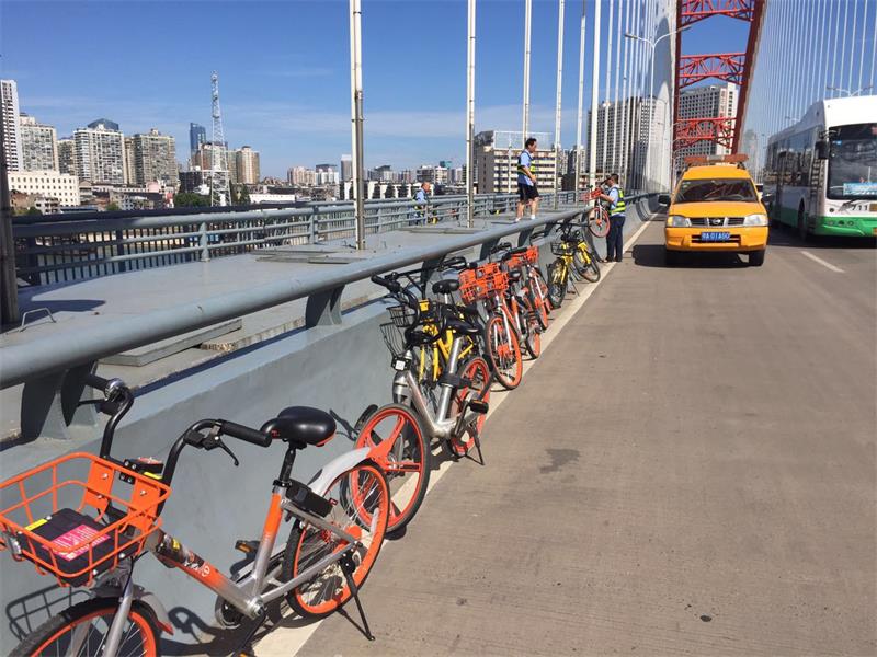 為保障橋面的整潔、暢通和機動車安全通行,7月20日上午9點,市路橋中心漢江橋梁管理一所所領(lǐng)導(dǎo)帶領(lǐng)黨員和骨干等5名同志耗時近兩小時,冒著橋面高溫,通過單人肩扛、雙人抬放方式,集中清理了晴川橋機動車道上的共享單車60余輛,或轉(zhuǎn)移至橋下,或轉(zhuǎn)移至橋面人行道,有序擺放。同時,橋梁管理所積極聯(lián)系摩拜、ofo等單車管理單位反饋了相關(guān)情況,尋求長效管理機制。橋梁管理所將加大巡查力度,及時提醒市民文明使用單車,保障橋梁安全暢通。