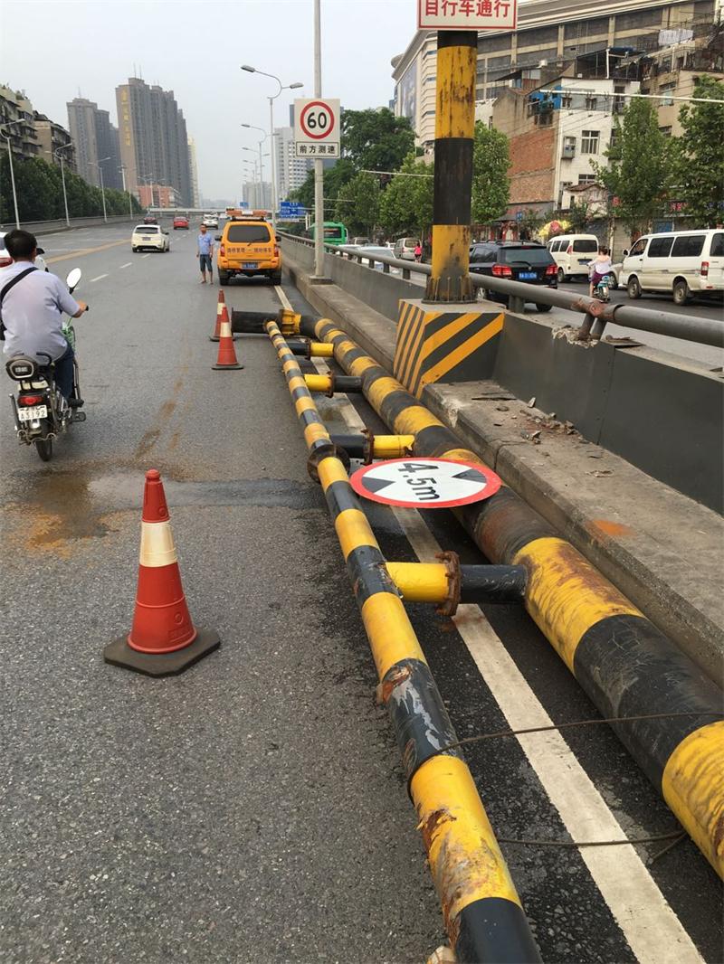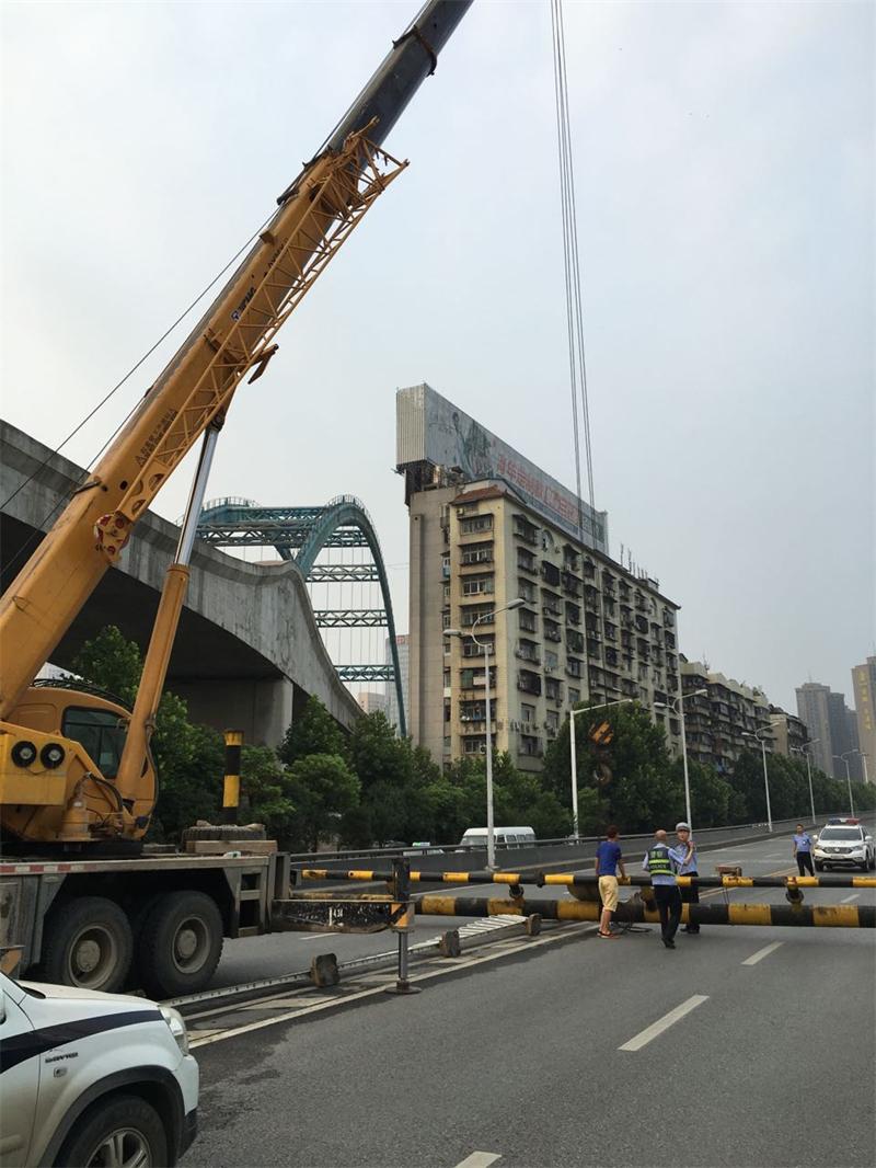 今早清晨5:30分,漢口黃浦路立交橋頭限高門架被大貨車將橫桿撞落,造成二層立交橋雙向交通中斷。事件發(fā)生后,長江二橋管理所第一時間趕到現(xiàn)場,協(xié)調(diào)交管調(diào)集大型起重車輛救援。管護隊員在協(xié)助交警清理障礙物的同時,對橋梁設(shè)施損壞情況進行認真檢查并拍照取證,現(xiàn)場處置忙而不亂,有條不紊。經(jīng)過1個多小時的連續(xù)奮戰(zhàn),事故現(xiàn)場清理完畢,搶在早高峰來臨之前,恢復了橋面交通,為市民提供了安全暢通的通行環(huán)境。