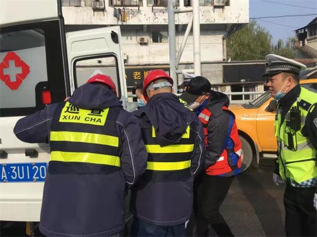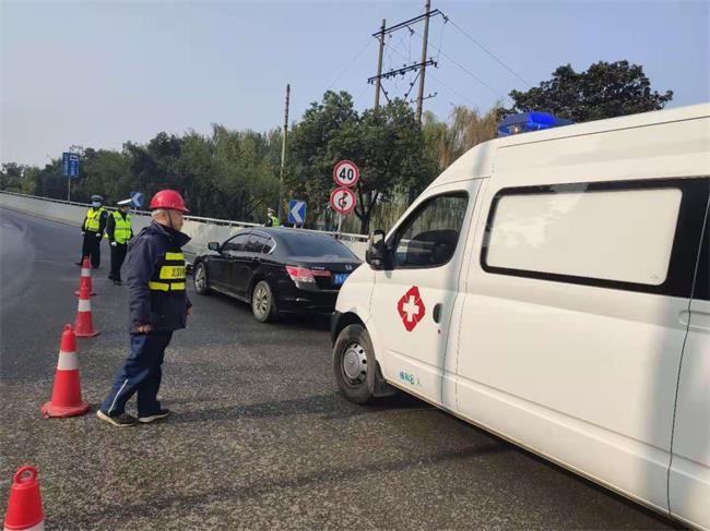 9點(diǎn)30分,江城氣溫較低,天氣比較寒冷,長江二橋楊園匝道發(fā)生了一起交通事故,一個騎摩托車的車主不慎重重地摔倒在道路上。險情就是命令,當(dāng)班管護(hù)隊員火速趕到現(xiàn)場,協(xié)助交警在事故現(xiàn)場擺放反光筒,維持現(xiàn)場秩序,把傷者合力抬上救護(hù)車,為搶救生命營造通道。隨后及時清理事故現(xiàn)場遺落的雜物,檢查事故現(xiàn)場橋梁設(shè)施毀損情況,以高度負(fù)責(zé)的精神保障橋梁安全暢通。