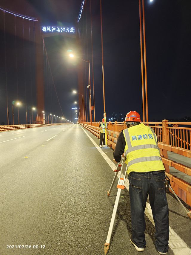 武漢路通市政工程質(zhì)量檢測中心有限公司城市運(yùn)維檢測事業(yè)部的干部職工在夜幕降臨前已做好一切準(zhǔn)備工作,只等子夜到來時(shí)橋面檢測條件具備就開始橋梁線形測量工作。此刻的武漢,大暑接小暑,熱浪一波高過一波,雖然已是夜深人靜,但是橋面經(jīng)過一天的高溫烘烤,人在橋上工作依舊感覺灼熱難當(dāng)。路通人就是在這樣的時(shí)節(jié),以高昂的斗志和敬業(yè)精神,投入到跨江橋梁的定期檢測工作中。這種不分晝夜的工作常態(tài),這種埋頭苦干,兢兢業(yè)業(yè)的工作態(tài)度,是路通人來到城運(yùn)大家庭后潛移黙化的文化整合,更是服務(wù)客戶的公司信念使然。“一切為了檢測客戶,檢測為了一切客戶,檢測為了客戶一切”,哪里有我們的客戶,哪里就有我們路通人的身影。“急客戶之所急”,24小時(shí)響應(yīng)客戶檢測需求,路通人要以這樣的態(tài)度,這樣的信念,一步一個腳印在檢測行業(yè)中再塑知名度和美譽(yù)度。