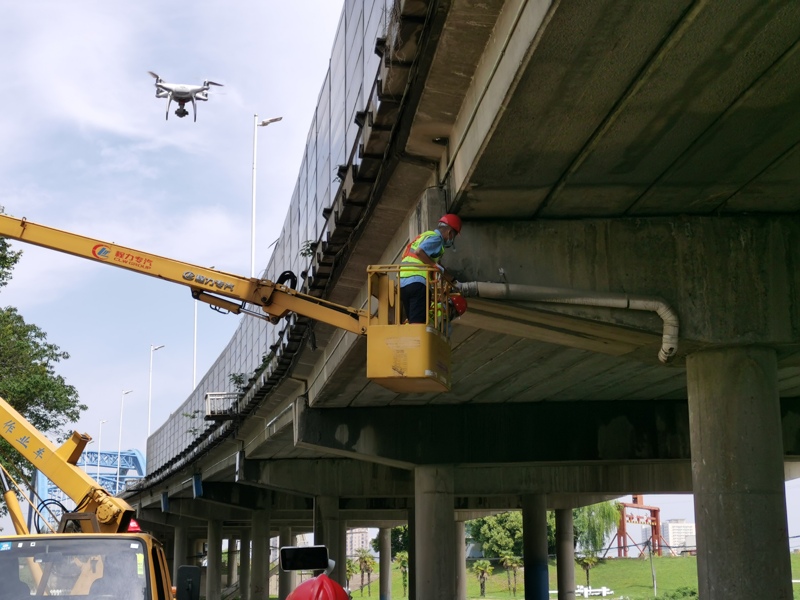 無(wú)人機(jī)巡查分隊(duì)通過(guò)無(wú)人機(jī)對(duì)隱患部位及周邊的梁板、橋墩情況進(jìn)行了再次巡查,近距離進(jìn)行了圖片采集,漢江三所通過(guò)對(duì)圖片進(jìn)行分析和判斷,排除了其他隱患,并制定了應(yīng)急搶修方案,二分公司維修隊(duì)在接到維修任務(wù)后立即組織人員對(duì)落水管進(jìn)行搶修。