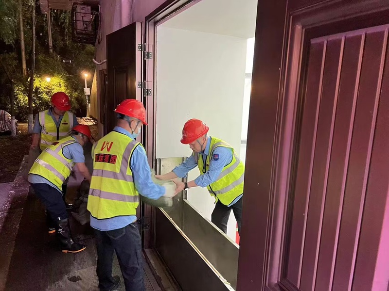 21時(shí)許,天空下起了暴雨,防汛排漬演練正式開始。按照演練流程,當(dāng)班管護(hù)隊(duì)員全部進(jìn)入臨戰(zhàn)狀態(tài)。21:20,電纜井溝水位開始上升,當(dāng)積水達(dá)30厘米時(shí),管護(hù)隊(duì)員將抽水泵提前放置在電纜井溝、配電房點(diǎn)位,并按預(yù)定方案布設(shè)防汛沙袋,做好排漬的各項(xiàng)準(zhǔn)備工作。