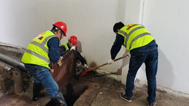 工作時(shí)大家換上膠鞋,手拿鐵鍬,在潮濕陰冷的沉水井邊,他們先用鐵鍬清除井底淤泥,然后鉆到沉水井下面,將抽水泵底部葉片上纏繞的異物拾撿干凈,最后用小推車(chē)將淤泥運(yùn)走。雖然渾身被污泥和污水弄得又臟又臭,但沒(méi)有人有一句怨言,在大家共同力下,將沉水井、出水口井清理疏通干凈。疏通完后,他們又對(duì)抽水泵進(jìn)行了安全排查檢修,并進(jìn)行了開(kāi)機(jī)試運(yùn)行,抽排工作正常。