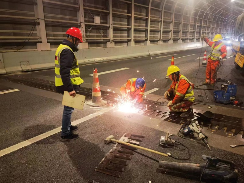 為避開車流高峰,鸚鵡洲大橋運(yùn)維所的所長馬東林、技術(shù)員唐洪勇組織專業(yè)維修人員挑燈夜戰(zhàn),對發(fā)現(xiàn)的伸縮縫的問題進(jìn)行連夜搶修,以實(shí)際行動保障橋梁的平安暢通。
