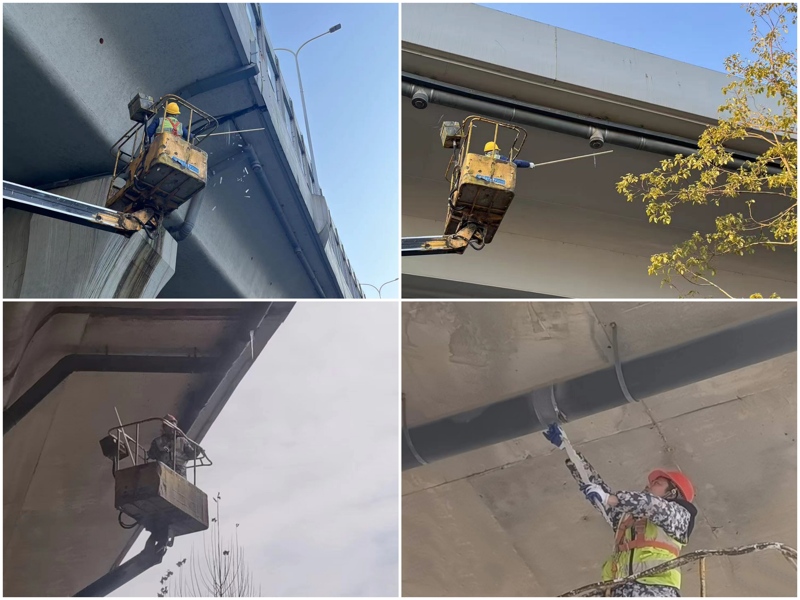 項目運維人員在日常巡查中密切關(guān)注,巡查4座高架橋項目,共發(fā)現(xiàn)約32處泄水管接頭處和伸縮縫與梁體下部結(jié)合部出現(xiàn)冰凌現(xiàn)象,危及橋下通行車輛和行人的安全。懸垂冰凌在不斷變大,除冰凌行動迫在眉睫。運維人員立即啟動應(yīng)急措施,上下點對點擺放反光錐,以提醒過往行人和車輛注意安全,做好應(yīng)急防護后,除冰人員使用高架車登高開展冰凌清除作業(yè),確保行人、車輛安全出行。