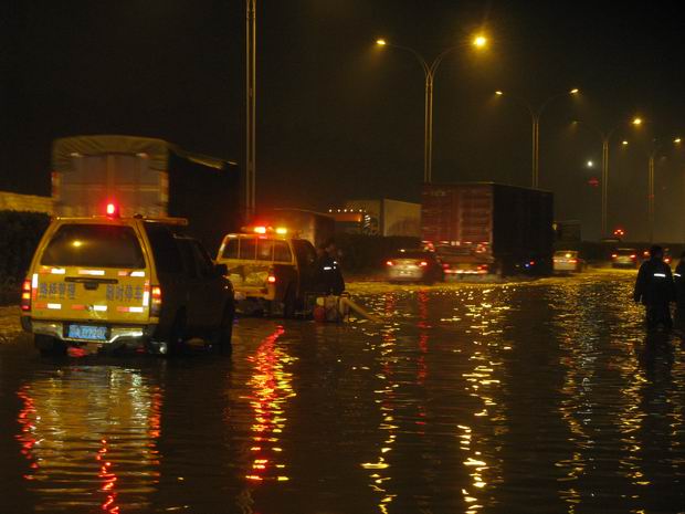 6月13日,預報武漢有大暴雨。道路橋梁管理處立即啟動排水防漬四級預案,進入臨戰(zhàn)準備,全處24小時值班備勤。15日凌晨,大雨傾盆,強降雨造成所轄道路橋梁部分地段嚴重漬水,道路橋梁管理處長豐橋管理所和天興洲大橋管理所組織對漬水嚴重的三環(huán)線K22+600(張畢懈路段)、K23+200(古田二路)、K27+100(常青立交至古田二路外環(huán))等地段進行緊急抽排疏撈,累計抽排31.5小時、投入45人次,備勤車輛8臺、移動抽水泵5臺,使用燃油113升。白沙洲大橋管理所為確保ETC設施設備的供電安全,對4號配電房電纜線槽內(nèi)積水進行了7小時抽排。由于提前準備、組織有序,抽排及時,交通疏導得力,三環(huán)線道路于15日6時全線恢復正常交通秩序,市內(nèi)橋梁均未發(fā)生嚴重交通堵塞現(xiàn)象。