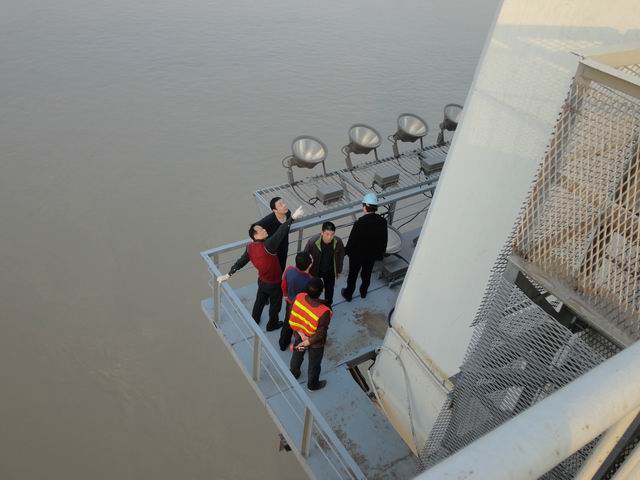 最后,鄭主任在橋梁重點部位進行了安全檢查。他沿著大橋檢測通道下到鋼箱梁內聽取了王解元總工程師現場講解橋梁知識,隨后又到大橋2#主塔內進行了現場查勘。