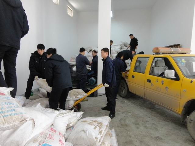 上午9時(shí),準(zhǔn)時(shí)開(kāi)始清理應(yīng)急物資——融雪劑。有的人爬上鹽堆高處往低處翻送鹽包,有的人往小貨車上搬運(yùn),有的人在用手推車搬運(yùn),有的人在整理倉(cāng)庫(kù)內(nèi)的融雪劑包……100斤一包的融雪劑雖然有些沉重,但大家分工協(xié)作,盡管汗流夾背,依然干勁十足。直到下午4點(diǎn)多鐘,在大家齊心努力下,完成了融雪劑的轉(zhuǎn)庫(kù)工作。