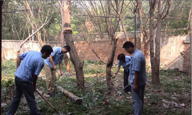 人來到所后院進行大掃除。大家對院中路面進行沖洗、鏟除雜樹枝和雜草、清除后院污染物,