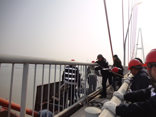 2013年11月至2014年2月,白沙洲大橋管理所根據(jù)突發(fā)事件應(yīng)急預(yù)案和白沙洲大橋?qū)嶋H情況,加大對橋下挖泥沙船舶的監(jiān)控和巡查,并及時與各水陸路職能部門聯(lián)系,積極采取措施,確保橋梁安全。