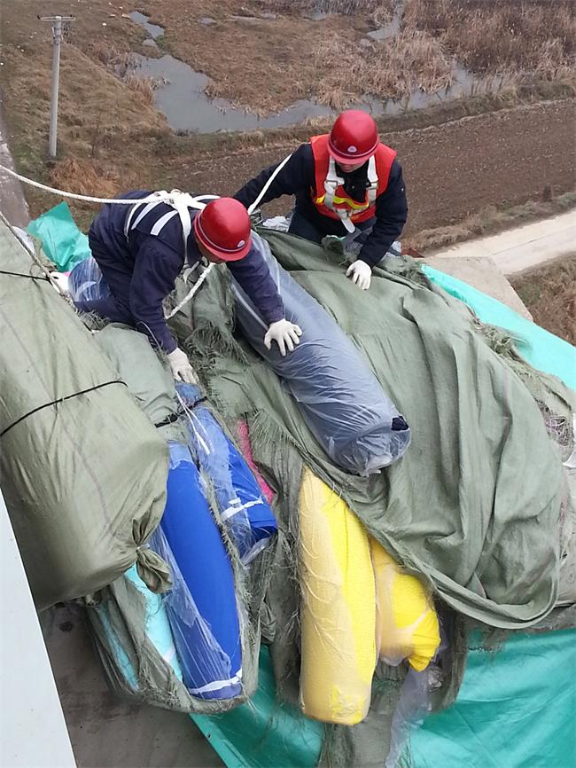 搶險隊員及時清除了散落在橋面行車道的貨物,運用吊車拆除受損變形防拋網(wǎng);與此同時,路橋中心啟動與鐵路方的聯(lián)動機制,通知鐵路方適時安排停電排險?,F(xiàn)場搶險隊員利用爬梯下到離地30多米高、活動空間不足3平方米的橋墩帽梁上,對散落的2噸多布匹進行清理,第一時間消除了安全隱患。整個救援搶險工作井然有序,及時消除了對公路和鐵路行車安全的影響,突發(fā)事件得以快速處置。