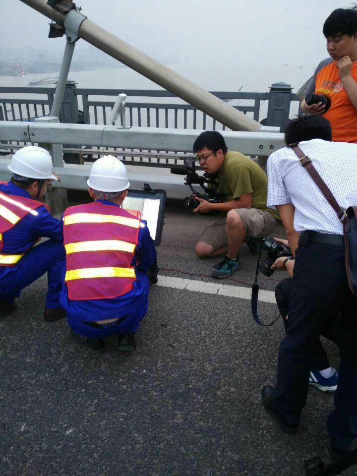 2016年6月7日晚17:00時(shí)至19:00時(shí),中鐵大橋局橋科院組織科研人員運(yùn)用新型智能斜拉索檢測儀--探索者,在天興洲長江大橋進(jìn)行了現(xiàn)場檢測實(shí)驗(yàn),吸引了中央電視臺科技頻道記者到現(xiàn)場進(jìn)行了采訪報(bào)道。天興洲大橋管理所積極配合,啟動(dòng)相關(guān)預(yù)案,經(jīng)過精心組織,認(rèn)真部署,對檢測區(qū)域進(jìn)行了道路封閉和警示布置。