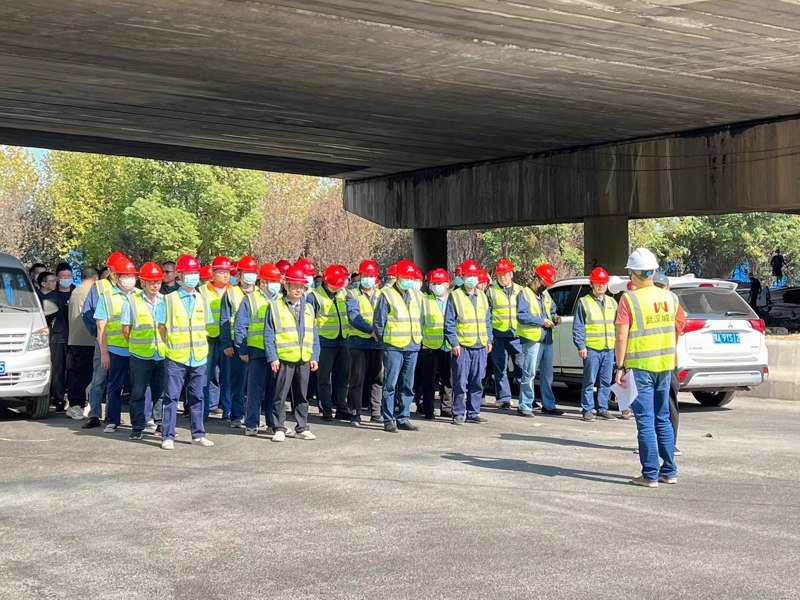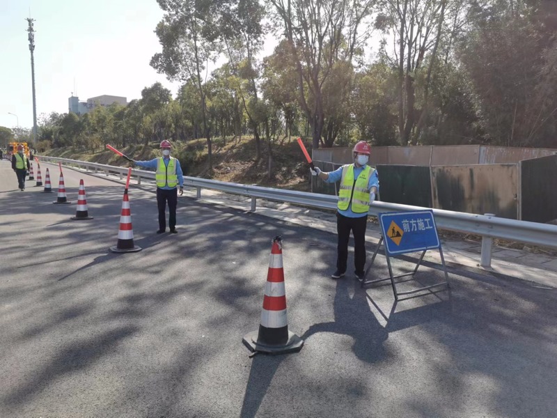 隨后,運(yùn)維所管護(hù)隊(duì)代表與施工單位現(xiàn)場作業(yè)人員代表相互出題布置不同交通環(huán)境、不同病害類別、不同應(yīng)急響應(yīng)級別的場景,由對方按照城運(yùn)公司日常維修占道交通組織“一橋一策”的要求進(jìn)行了現(xiàn)場交通安全設(shè)施的模擬布設(shè)。各單位觀摩人員現(xiàn)場予以檢查、點(diǎn)評。
