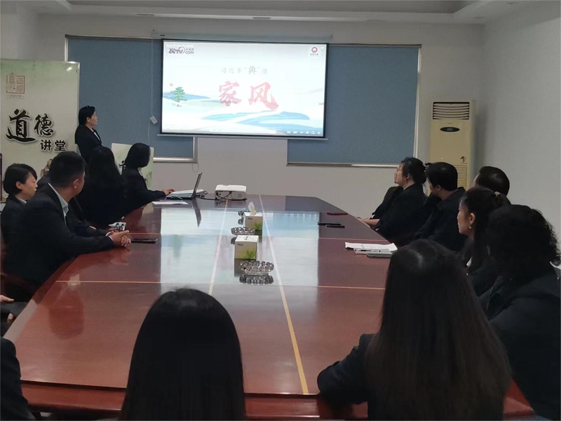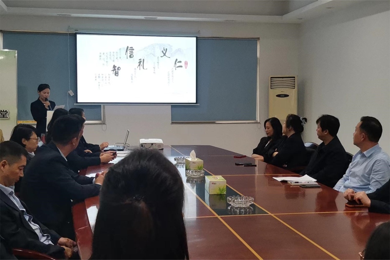 本次道德講堂活動圍繞“做一次反省、唱一首歌曲、看一部短片、誦一段經(jīng)典、談一番感受、送一份吉祥”六個環(huán)節(jié)開展。伴隨著古典樂曲的悠遠(yuǎn)旋律,活動拉開帷幕,全體職工一邊凝視著屏幕上的“仁義禮智信”五個大字,一邊捫心自問做反省,一起走進(jìn)中華民族文明的殿堂。