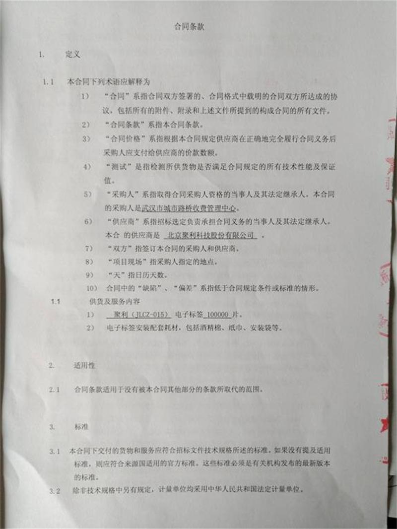 市路橋中心2016年單片式太陽能電子標(biāo)簽政府采購合同書(北京聚力科技股份有限公司)