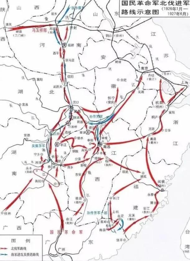 北伐路線示意圖